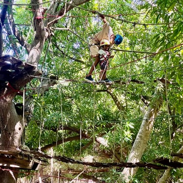 – Le parcours Aye Aye (dur/adulte) 15 ateliers + tyrolienne (Zipline)