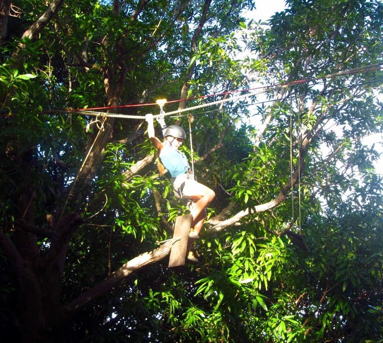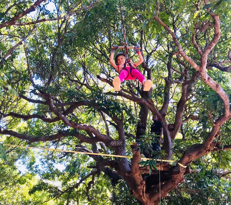 Une demi-journée vous suffira pour découvrir l’ensemble du parcours au coeur du parc dans les manguiers. (Réservation obligatoire)