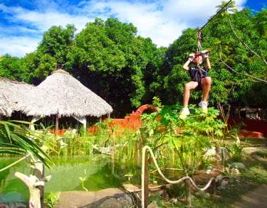 Le parcours d’Aventures du Jungle Park se situe à coté du Lodge.