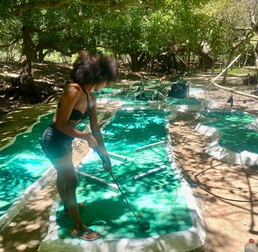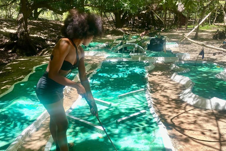 A coté du Lodge sous les manguiers centenaires nous vous proposons le Jungle Mini Golf, profitez du push and put entre amis ou en famille.