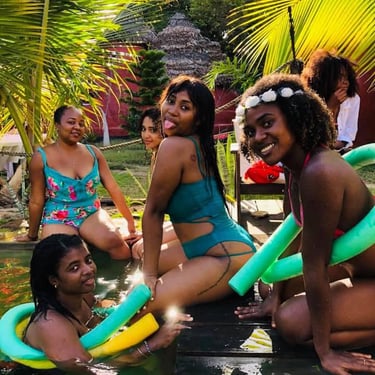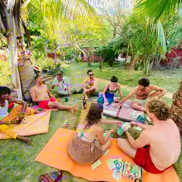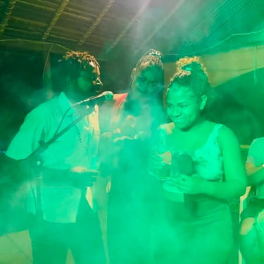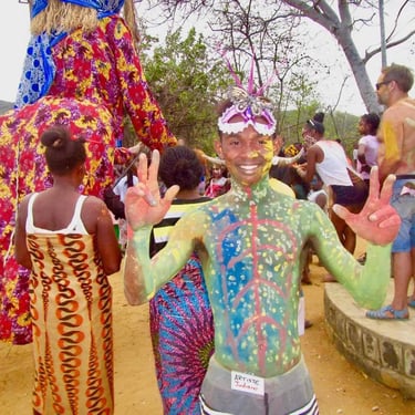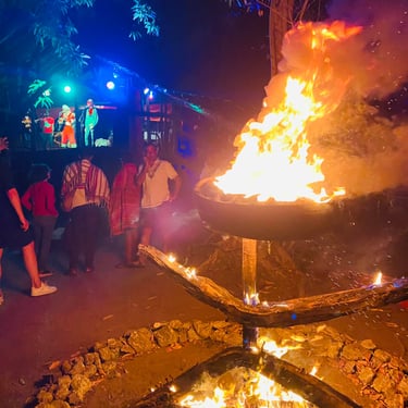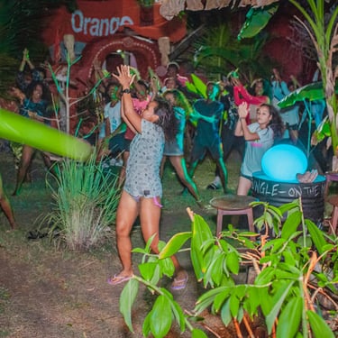 Nous mettons en place plusieurs scènes, une dans les arbre pour la musique traditionnelle, une à coté de la piscine naturelle pour les DJ's et des ateliers à visiter dans les jardins tropicaux du lodge, pour la peinture, sculptures, tatouages, photos, couture, cuisine, body painting...