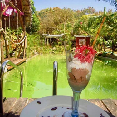 Douceurs locales préparées avec des fruits de saison, glaces ou chocolat.