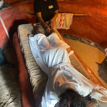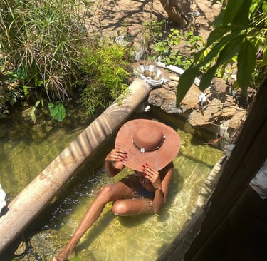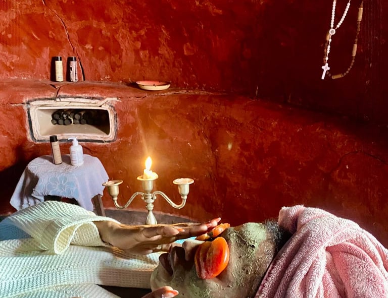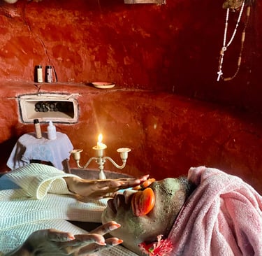 Bassins naturels de détente, salle de massages thérapeutiques sous terre, salon de pédicure et de tissages, Sauna-Hamman (Sweat Lodge), salle de yoga et méditation, natural jacuzzi, masques de beauté, fish pédicure.